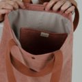 Lleva doble asa de suave cinta de algodón reciclado 100% .