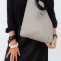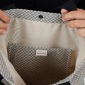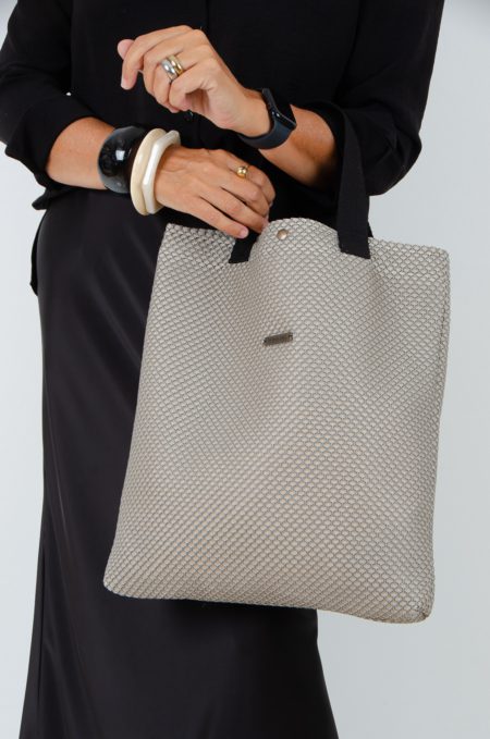Bolsa tipo tote bag de gran capacidad y comodidad, confeccionada en tejido de tapicería tipo neopreno de color piedra.