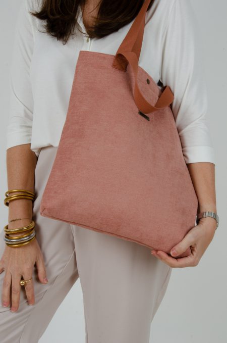 Bolsa tipo tote bag de gran capacidad y comodidad, confeccionada en tejido de tapicería de color rosa nude.