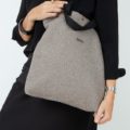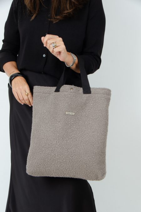 Bolsa tipo tote bag de gran capacidad y comodidad, confeccionada en tejido de tapicería efecto lana en color taupe.