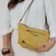 Lleva asa de piel de curtido vegetal en color marrón regulable , va forrado y lleva bolsillo interior .