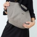 Bolsa tipo shopping bag con bastante capacidad confeccionada en bonito tejido de tapicería efecto lana en color taupe.