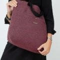 Bolsa tipo shopping bag de gran capacidad confeccionada en tejido de tapicería efecto lana en color burdeos.