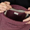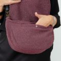 Bonito bolso con tapa confeccionado con tejido de tapicería efecto lana en color burdeos, va cerrado con cremallera y lleva bolsillo interior y otro en el exterior.