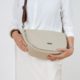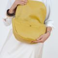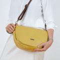 Bonito bolso con tapa confccionado con tejido de tapicería efecto piel en color lima, va cerrado con cremallera y lleva bolsillo interior y otro en el exterior.