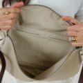 Va forrado con suave tela en color piedra y lleva dos bolsillos en el interior.
