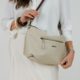 Lleva asa de piel de curtido vegetal regulable en color marrón que te permitirá llevarlo a la medida que prefieras.