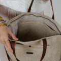 Lo podrás llevar de mano o como bandolera con asa regulable, las tiras de piel son de curtido vegetal en color marrón.