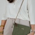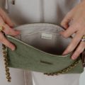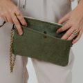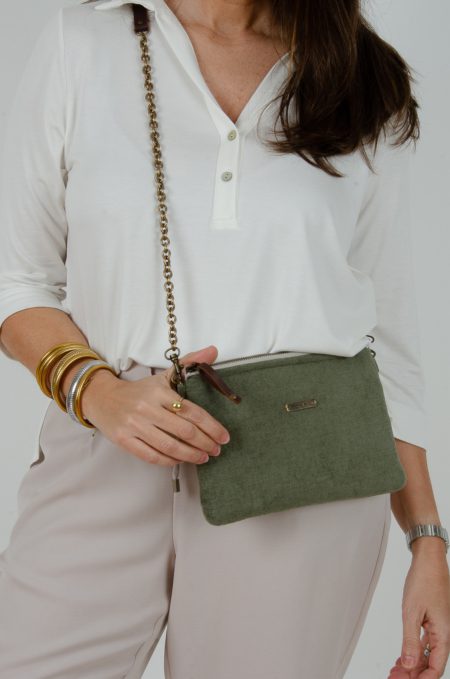Bolso confeccionado en tejido de tapicería en color verde caqui.