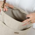Lleva dos bolsillos de gran capacidad en el exterior y bolsillo en el interior, el bolso va forrado con tejido liso en color piedra.