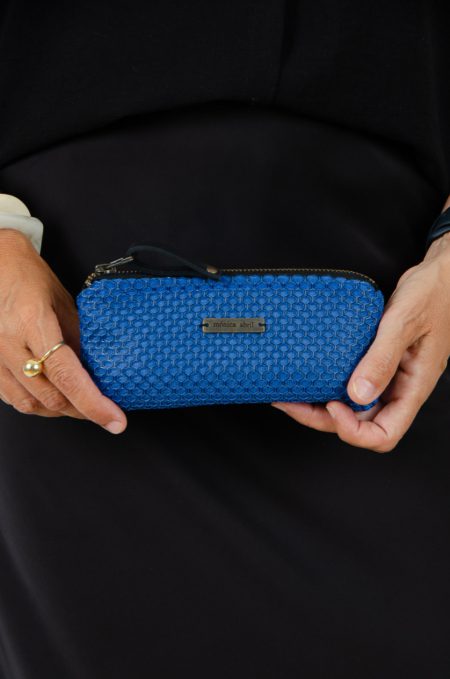 Monedero organizador muy práctico para mil y una utilidades, confeccionado en tejido de tapicería tipo neopreno en color azul klein.