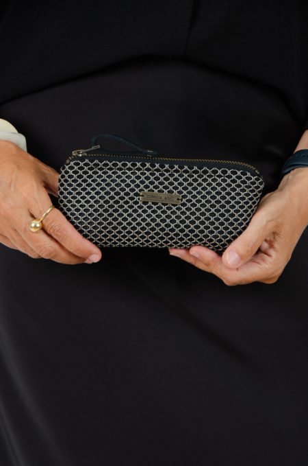 Monedero organizador muy práctico para mil y una utilidades, confeccionado en tejido de tapicería tipo neopreno en color negro.
