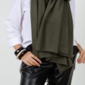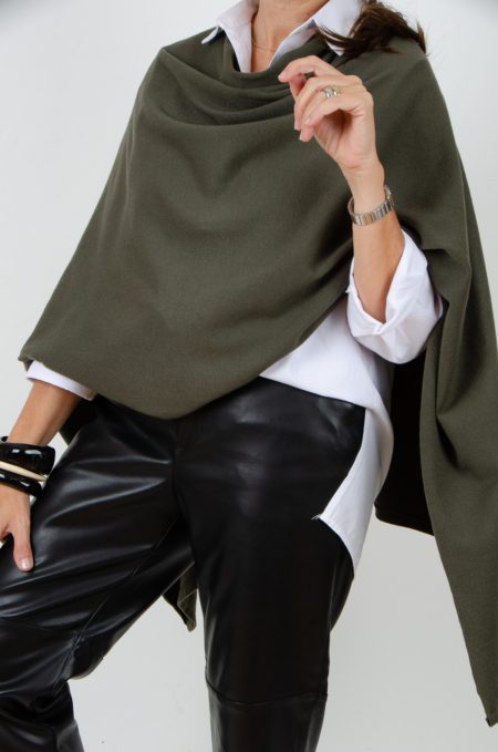 Poncho de viscosa en color verde caqui con tacto suave y abrigado con caída fluida que estiliza cualquier look.