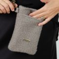 Bolsito para el teléfono confeccionado con tejido de tapicería efecto lana en color taupe.