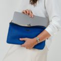 Funda de ordenador confeccionada en tejido de tapicería tipo neopreno en color azul klein .