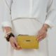 Monedero organizador muy práctico para mil y una utilidades, confeccionado en tejido de tapicería efecto piel de color arena.
