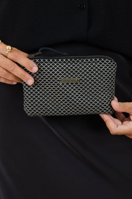 Monedero organizador muy práctico para mil y una utilidades, confeccionado en tejido de tapicería tipo neopreno en color negro.