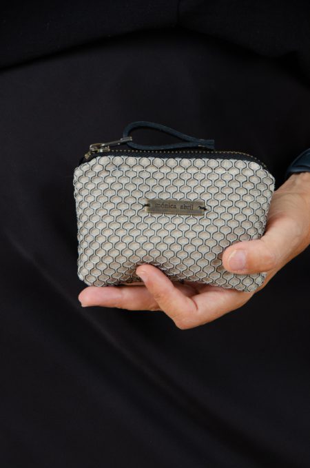Monedero organizador muy práctico para mil y una utilidades, confeccionado en tejido tipo neopreno en color piedra.