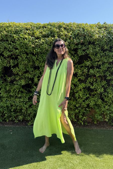 Kaftán en tejido de muselina algodón 100% en color amarillo flúor
