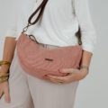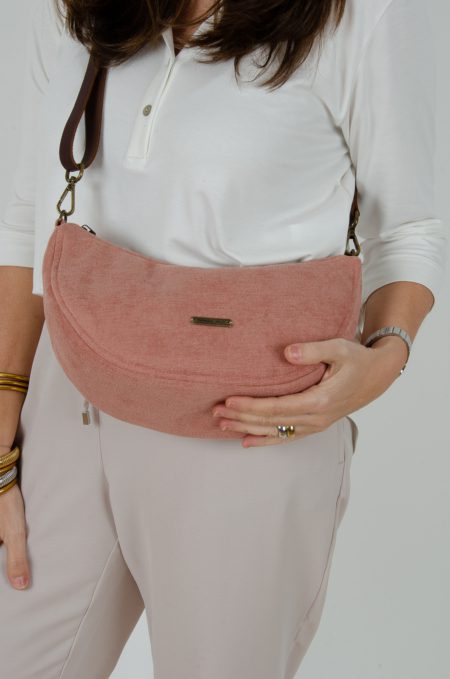 Bonito bolsito confeccionado en tejido de tapicería en color rosa nude, tiene bastante capacidad, va cerrado con cremallera y lleva bolsillo interior.